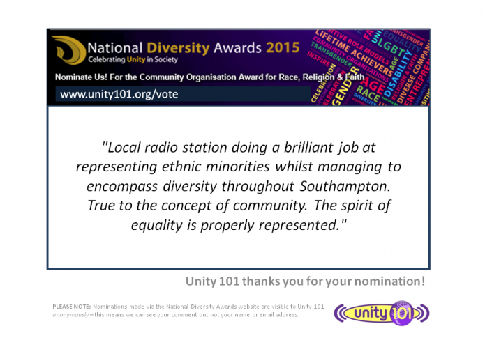Support has been pouring in for Unity 101's National Diversity Award nomination.