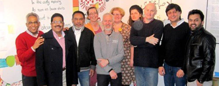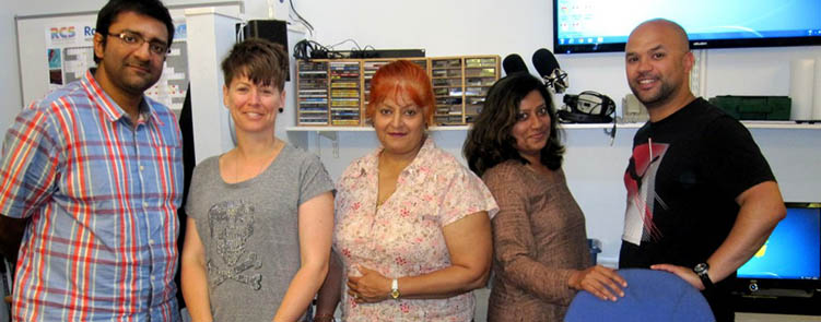 Some of the Unity 101 volunteer presenters getting advance radio training from station manager Ram Kalyan "Kelly".