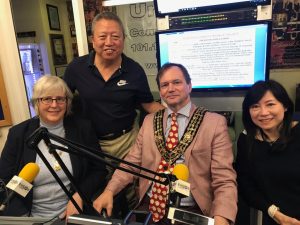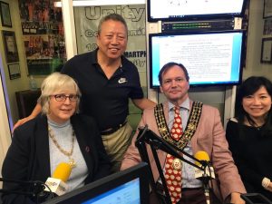 Councillor Peter Baillie the 797th Mayor of Southampton on and Mayoress Kim Baillie came to Unity 101 Studio and chatted to Andy Lia and Vicky Chang on the Under the Same Sky radio programme on Monday 4th November .